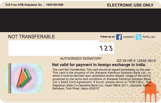Jhalawar Kendriya Sahkari Bank Ltd. has launched ATM and RuPay Debit Card Services on 30th October 2015.The bank is member of NFS and its RuPay ATM cum Debit Card can be operated at around all ATMs all over India.